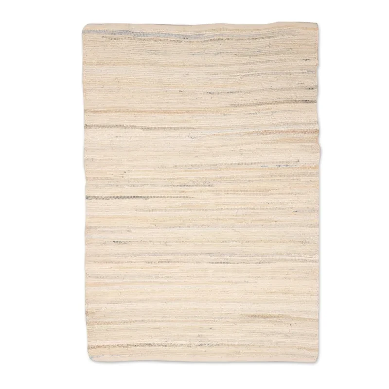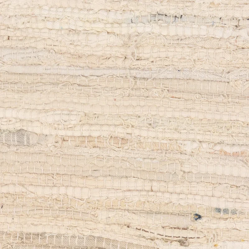 Working on a traditional loom, Indian artisans use strips of recycled cotton fabric in hues of ivory, ecru, taupe and champagne to hand-weave this stylish area rug.