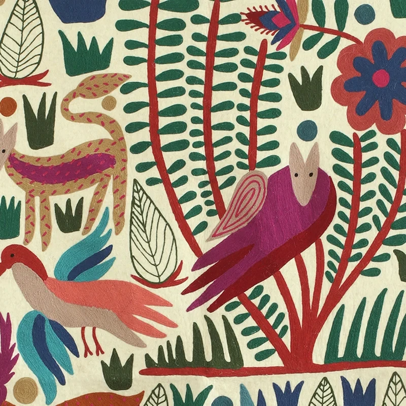 Says Indian artisan Amit Moza, "Kashmir is famous for beautiful and creative works of art. I want to spread Kashmir's art and craft." He creates this stunning wool area rug, featuring chain-stitched patterns performed by hand to depict jungle animals in their natural habitat. Using a specialized hook known as an aari, Amit carefully embroiders each animal for a winning composition that brings the beauty of India to your home.