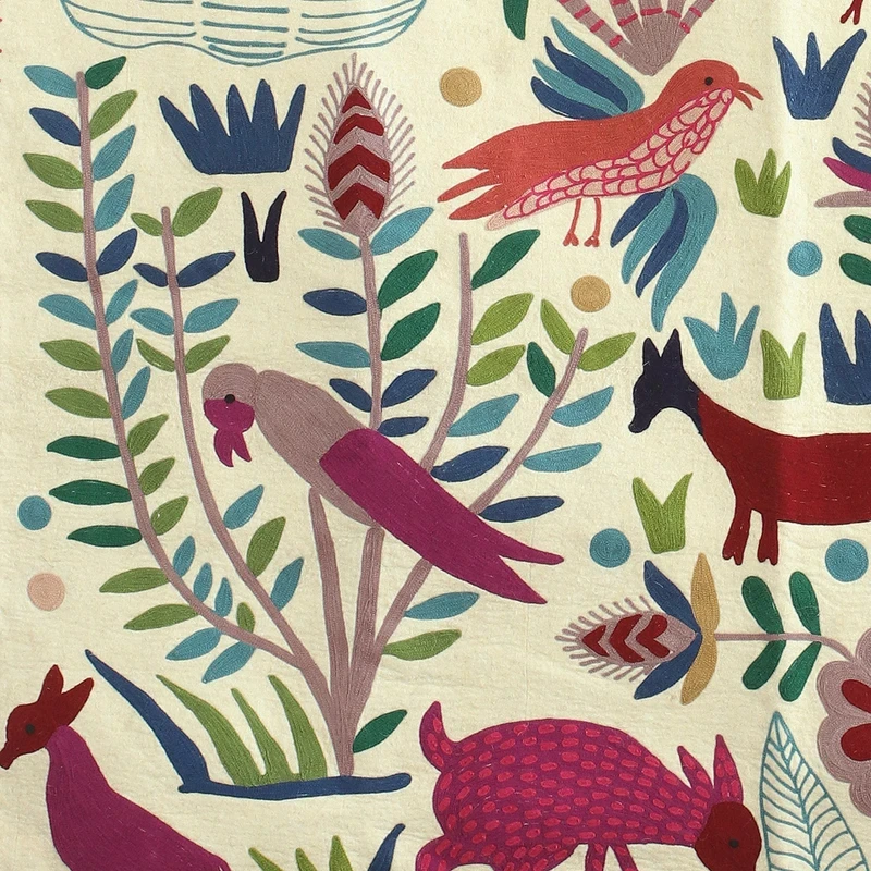 Says Indian artisan Amit Moza, "Kashmir is famous for beautiful and creative works of art. I want to spread Kashmir's art and craft." He creates this stunning wool area rug, featuring intricate patterns that are chain-stitched by hand to depict a jungle full of animals. Using a specialized hook known as an aari, Amit carefully embroiders each animal for a winning composition that brings the beauty of India to your home.
