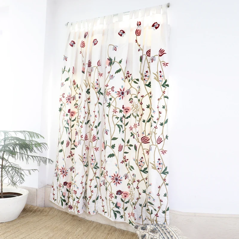 Bring a floral charm to your home with this beautiful pair of chain-stitched curtains made from 100% cotton.