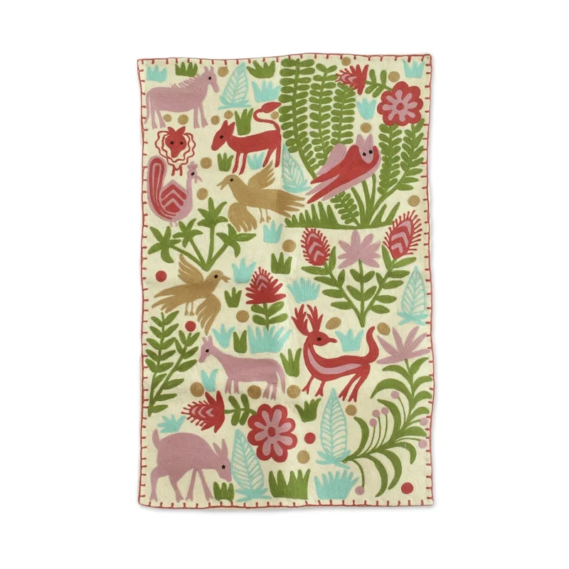 Cotton Wall Hanging with Colorful Embroidered Details, "Tender Spring"